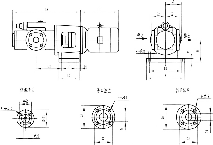3GF30型法蘭式泵外形及安裝尺寸