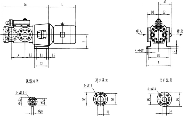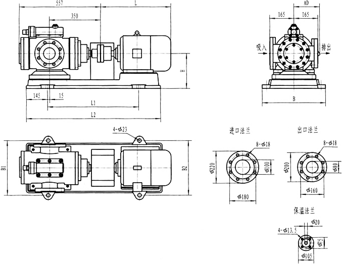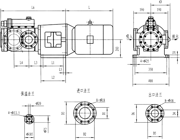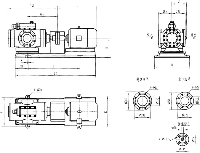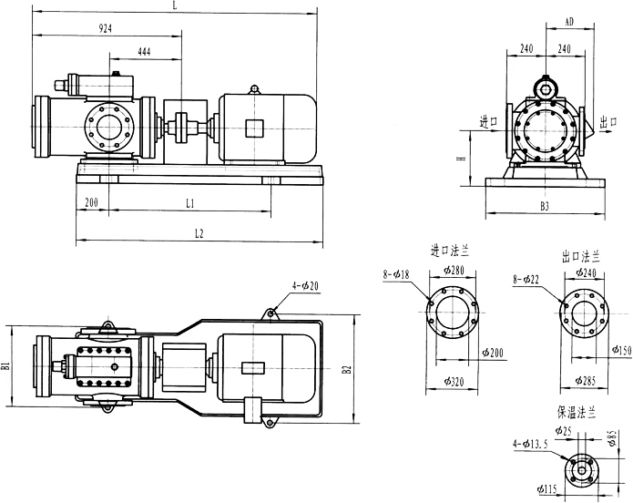 3GBW35,3GF35型法蘭式泵外形及安裝尺寸