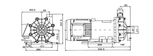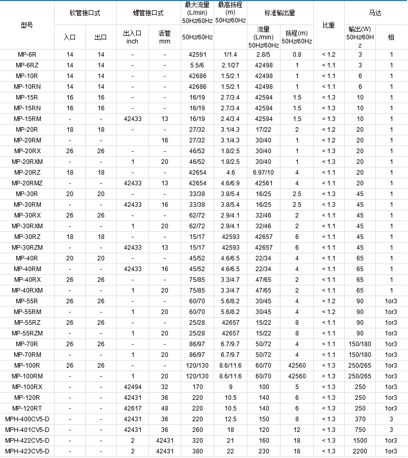 螺紋接口式泵性能及安裝尺寸同軟管接口式泵;